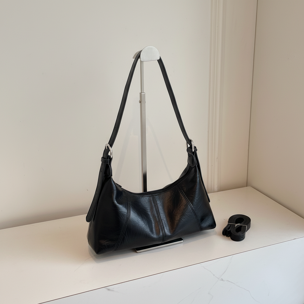 Design Minimalista Urbano: Silhueta assimétrica que se molda confortavelmente ao ombro, ideal para transitar do escritório para um jantar especial.